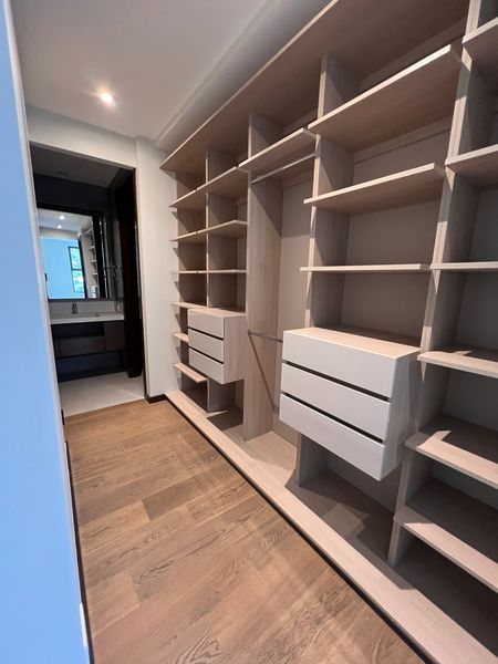 Lavandería con línea blanca Dormitorio máster con walk-in clóset